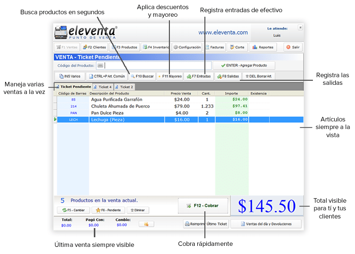 ELEVENTA es un sistema de punto de venta que te pone al par de la competencia, diseñado para reemplazar tu caja registradora (o tu calculadora y papel) económicamente y sin necesidad de requerir de amplios conocimientos en computación.